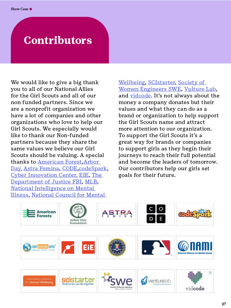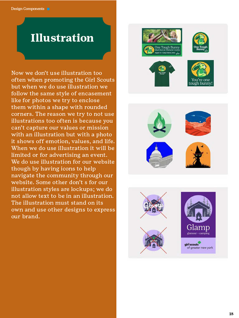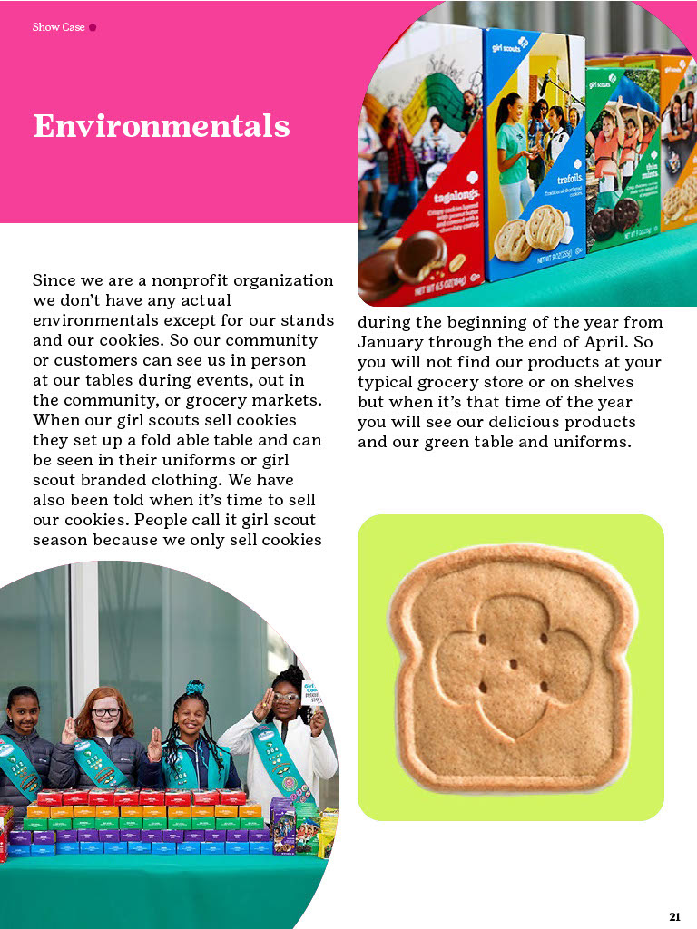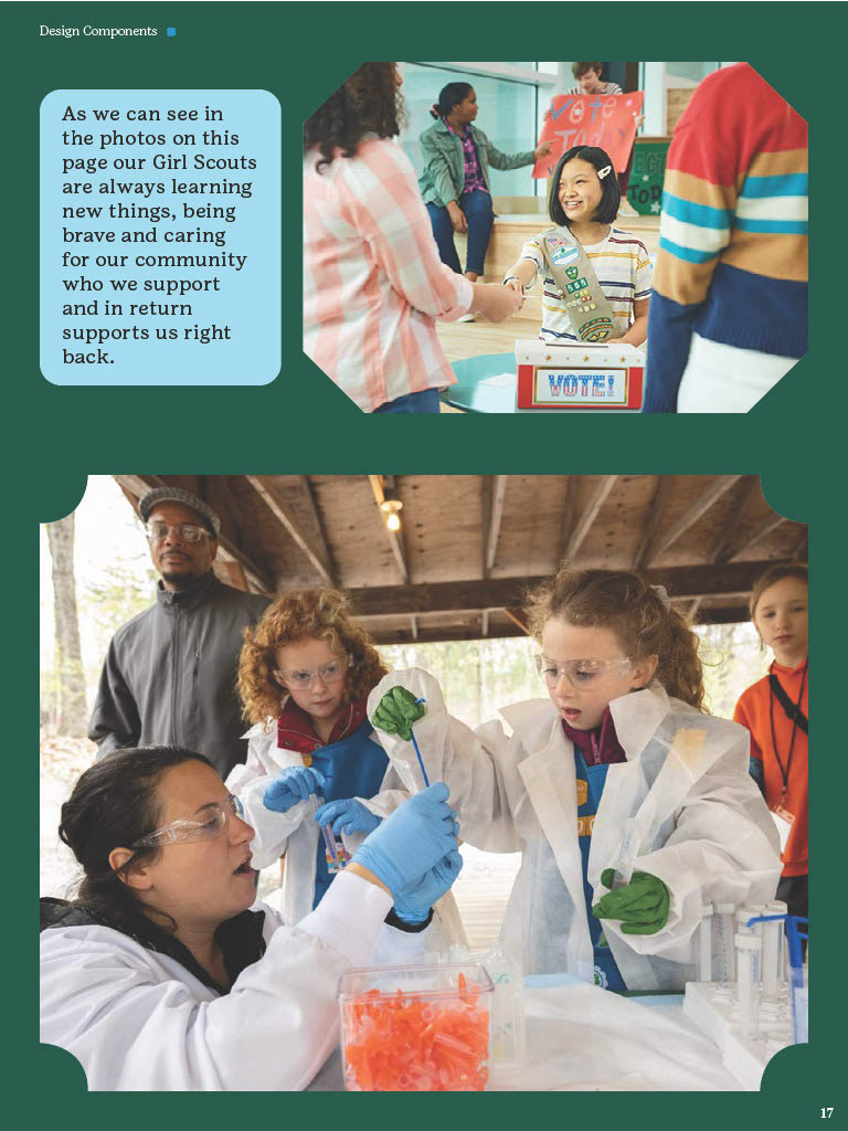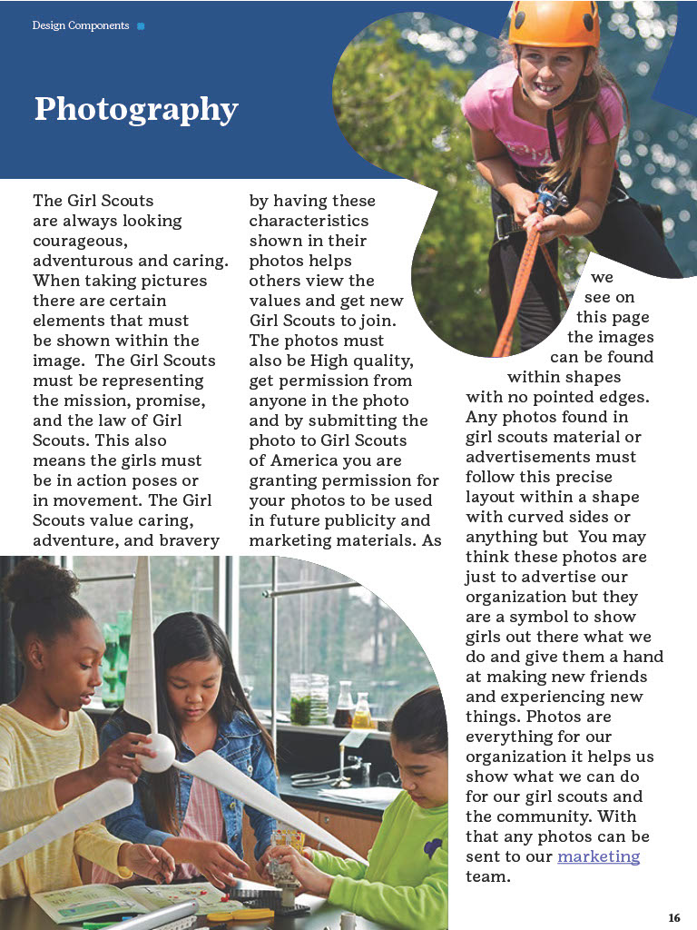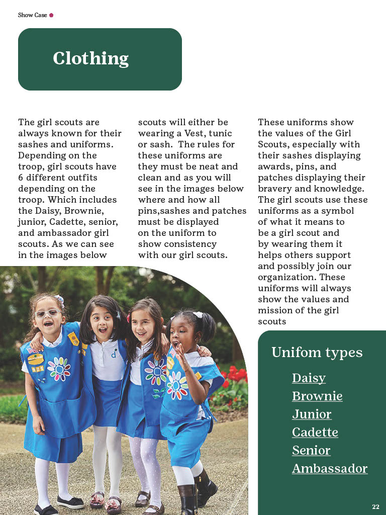 The Brand Guidelines Book was a project to create a guidelines book for a brand or nonprofit organization from the list provided. The reason for this project was to learn about branding and how companies or organizations use branding. During this project I learned a lot about how companies/organizations use branding like how they use specific images, fonts, allow use of their identity, design components and much more. Now to state this project was in no relation to the official girls scouts this is purely for a school project and is intended to display my work and research all images and information belongs to the girl scouts. So, during his project I had to do a lot of research about the girl scouts by looking through their official brand book, documents and other important files given to the public. I would say the only struggles I had during this project was the finding the true branding as we can see in this there is a lot of branding from colors to use and images the problemĀ I mainly rain into was all the state varieties of the girl scouts that followed the brand identity but did have minor differences that would confuse me but in the end they all still had to follow the main branding book no matter what. This project really displayed my work using grids, color pallet, and researching. Overall, this project helped increase my skill of book and brand book creation and how many companies/organizations have specific images they maintain in their design.