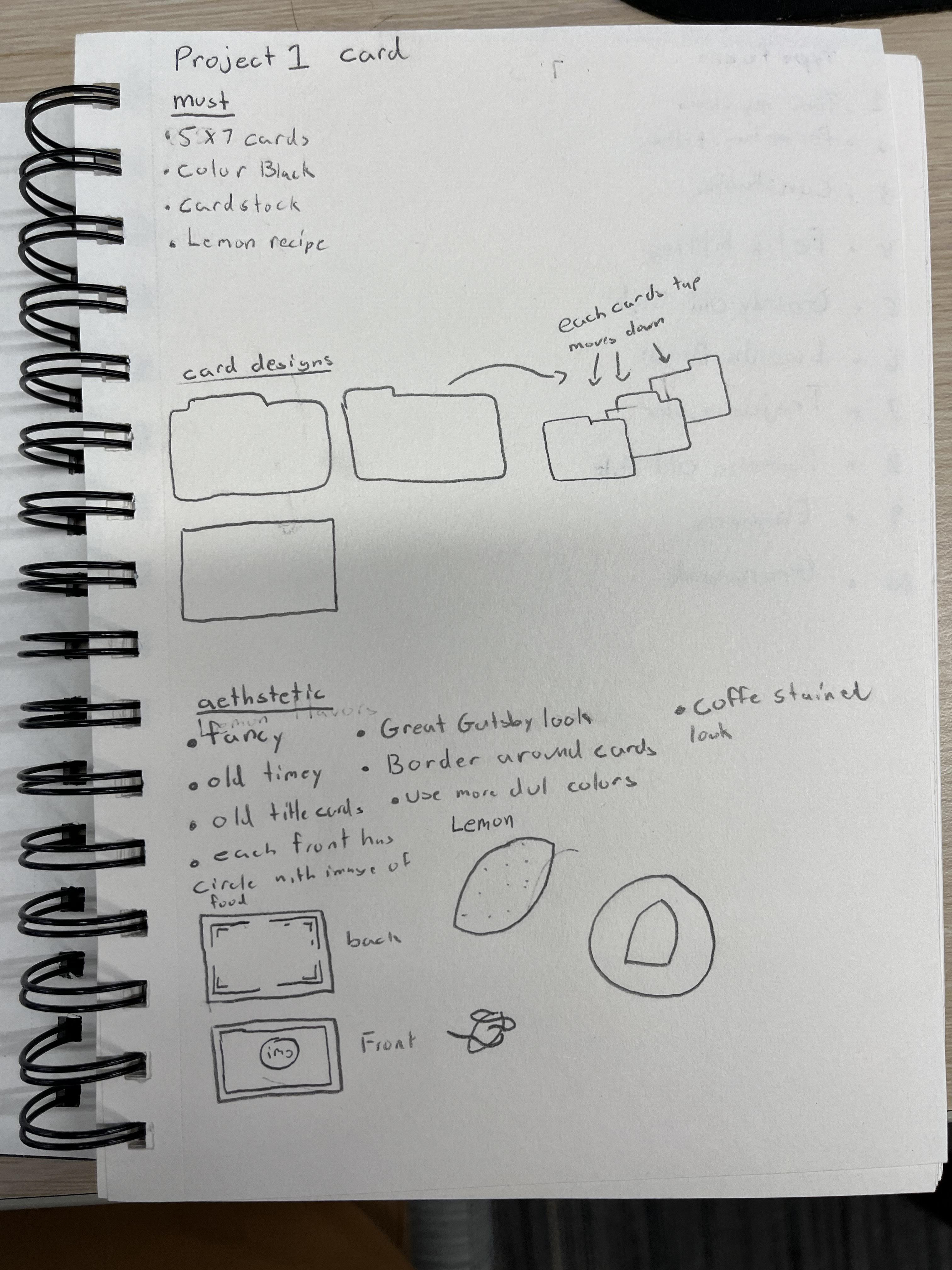 The Recipe Card project was one of my earliest projects of my College Career. This project displays my skills in adobe Illustrator. The Recipe Card project is a set of recipe cards for Lemon themed recipes that all have some form of lemons in their ingredients. The intended audience for this project was for a small mom and pop store that would sell these cards in a box set. My role in this project was to create each card with a unique theme that would also represent what kind of store they would be sold in. For my theme I went for a royal Italian theme with the light and dark color, and I also go inspiration from the dollar bill with the Scrollwork having that same flourish around the main image and tapestry for the name. Then for the final part of this project was to create a box that could hold all of the cars and displays the same theme for the cards. The only roadblock I ran into during this project was how I wanted to display the images for the finished foods I would have liked to do an actual photo of each but unfortunate I could not find any free to use images for this project that would fit the theme. So, I went with an illustrated look which does kind of work it follows the same theme with the inspiration from the dollar bill to have an illustrated portrait in the middle. In the end this project fit the theme I was going for in a simplistic style that follows most designs today. The Recipe Cards project definitely displayed my early skills in illustrator and how I have adapted these skills into my newer projects while also making them look better.