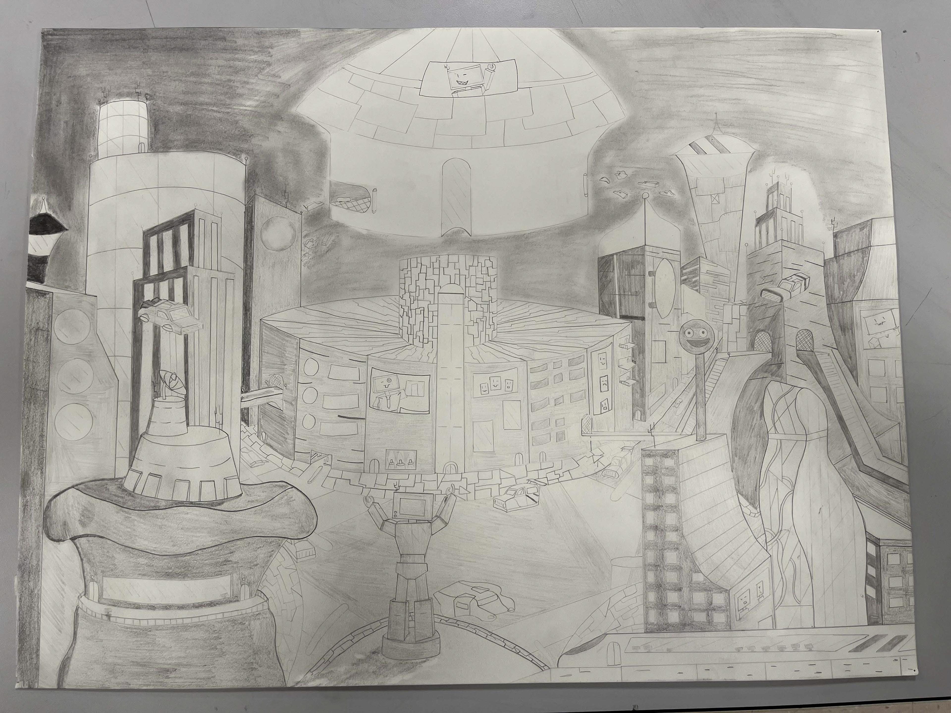 Creative Drawing I was an interesting class in a positive way. I was never much of a drawer but after this class I hope to incorporate more drawing into projects or outlines for projects. This collection features every perspective drawing project I did for the class and below features more perspective drawings that have helped me get more insight on perspective drawing. The 2 images below are projects while under that are practice drawings that were made by using still-life's which are sculptures of items used to practice perspective drawing. Perspective drawing was probably my favorite technique I learned in the class even to the point of doing the final project (featured above) based on perspective. The names of these projects were Main Street in Perspective Drawing, Small Town Perspective Drawing, and the final prompt 2 Utopia/Dystopia. The visual problem I ran into during the beginning was getting the layout to look natural and not completely geometrical/lifeless. I would say the most impressive one would have to be the small town in perspective when you really look into all the small details it really brings this small town to life.